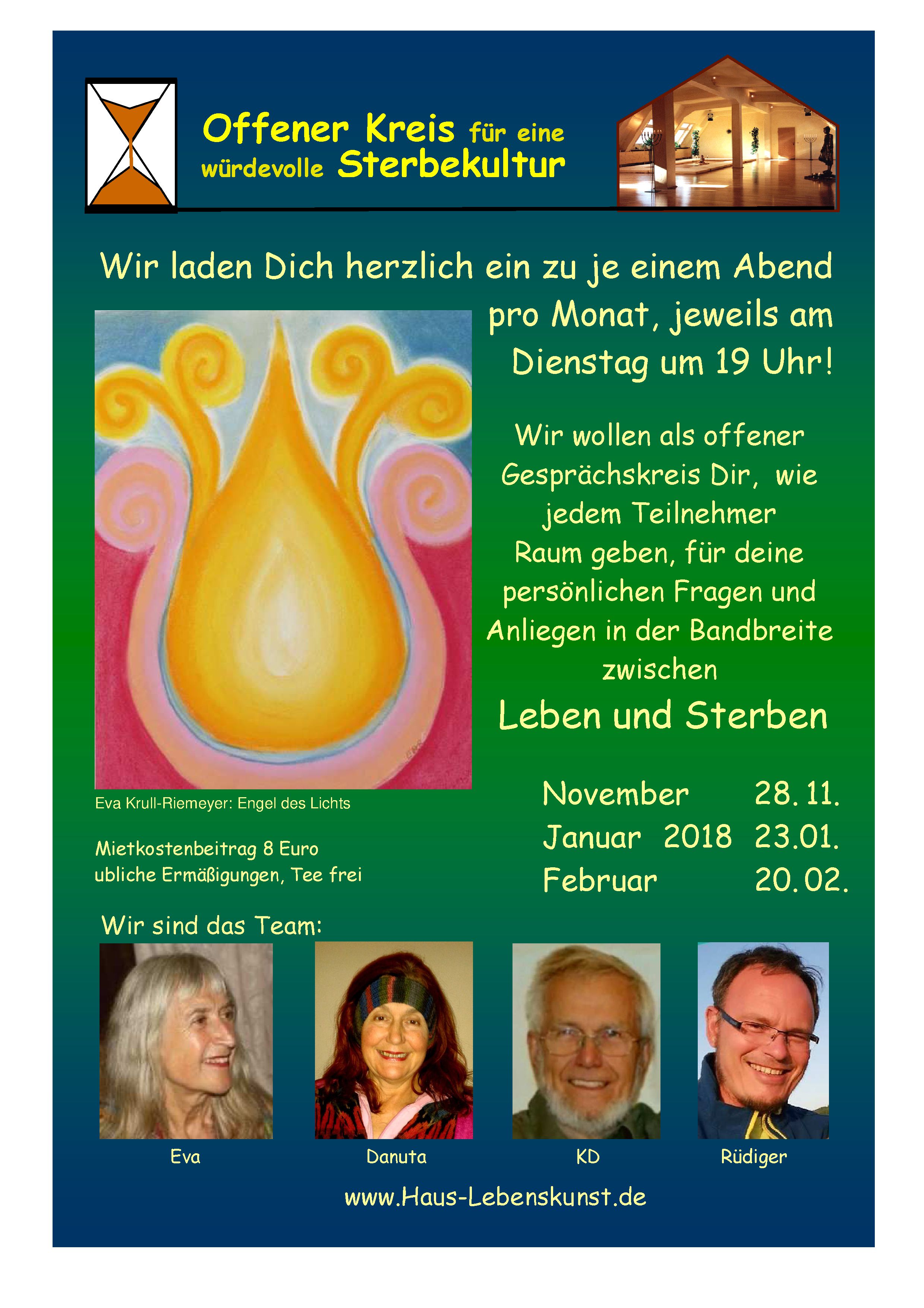 Der Offene Arbeitskreis für eine würdevolle Sterbekultur lädt einmal im Monat dienstags im Haus Lebenskunst ein zu einem Gedankenaustausch.