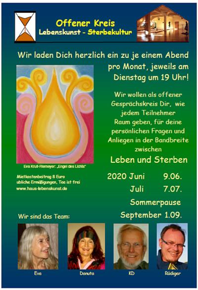 Der Offene Arbeitskreis Lebenskunst - Sterbekultur lädt einmal im Monat dienstags im Haus Lebenskunst ein zu einem Gedankenaustausch.